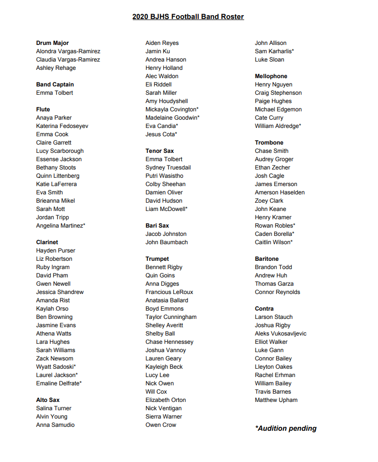 2020 Football Band Tools: Click to share on Facebook (Opens in new window) Facebook Click to share on X (Opens in new window) X Click to print (Opens in new window) Print